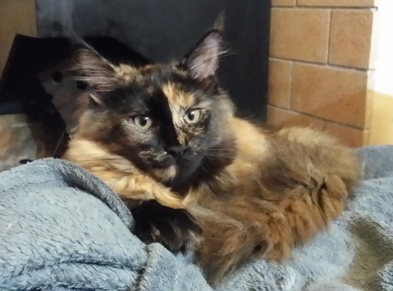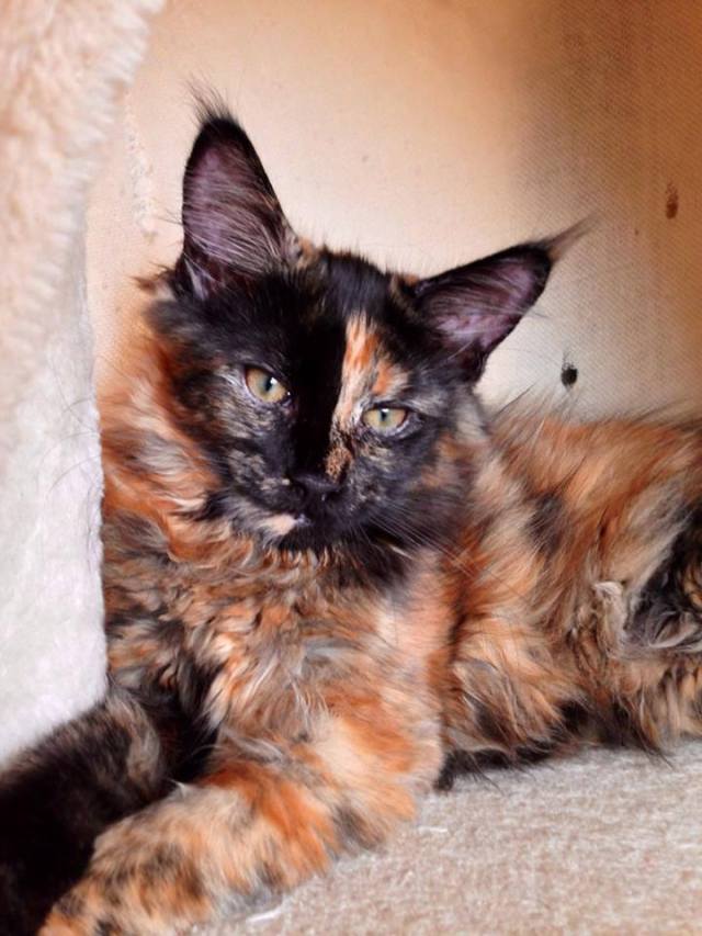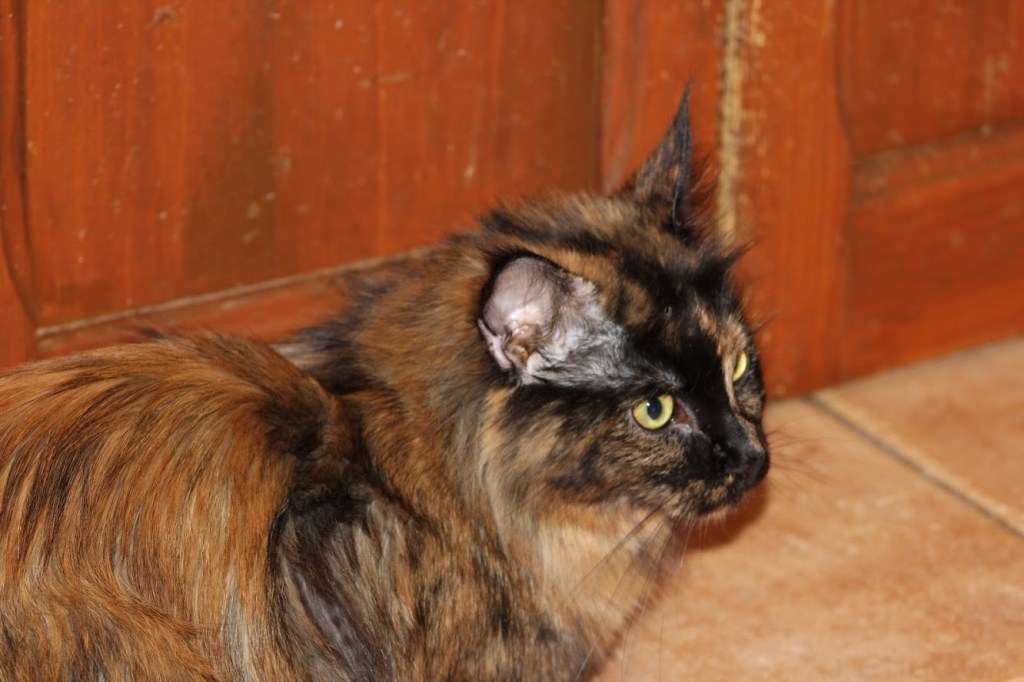Nos enamoró su carita, con esa división de color tan perfecta. Ella es una gata tranquila, un poco tímida. A su llegada participó en algunos shows WCF, de ahí su título de Jr.Ch. Tiene un buen estandar, un perfil muy marcado aunque a veces, la división de color, hace que no sea evidente a primera vista. Orejas correctas para su cabeza y un buen mentón. Siempre ha sido una gata corpulenta y una excelente madre, muy protectora con sus cachorros a los que tiene siempre punta en blanco. Tiene un celo silencioso, lo que hace complicado planificar sus camadas.
