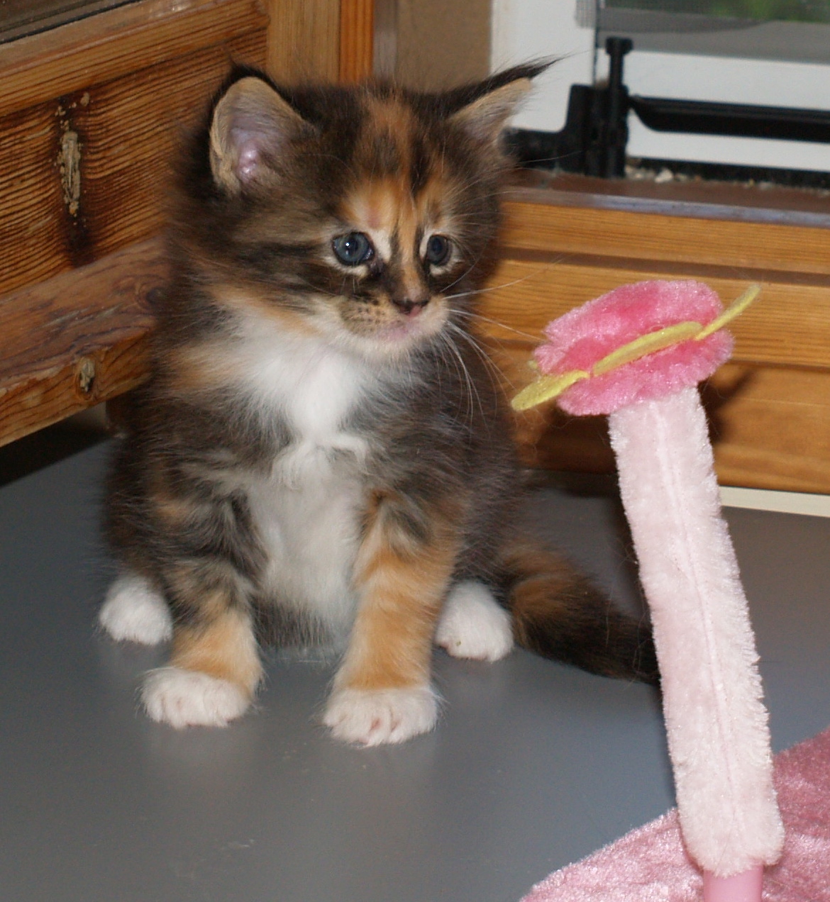Nuestra bonita tortuga negra tabby ticked con blanco tiene una linea muy especial. Hija de Caterina Della Banda Brigante y de nuestro RW SGC & WCH Atlantic Acadia’s Jimmy White Feet. El resultado de este cruce nos dio una camada de cachorros sólidos, de buen tamaño y excelente pelaje. De todos ellos, nuestra Nirvana cumplía además con los requisitos del estándar: excelente morro, muy buenas orejas e inmejorable perfil; siendo, además, la más robusta de las hembras. Nos enamoró de ella su look y la calidez de su colorido.