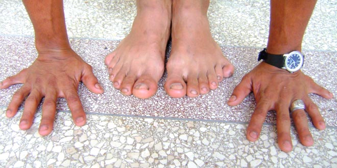 La polidactilia es una mutación de las llamadas “puntuales”: afecta a un solo nucleótido o a un número reducido de ellos y se puede comprar con el hecho de cambiar una única letra en una frase completa[2]. Este tipo de mutación produce cambios en las extremidades (más dedos) pero sin defectos añadidos, sean físicos o fisiológicos. También se caracteriza por ser autosómica (no relacionada con el sexo; tanto machos como hembras pueden presentarla) y dominante (basta un progenitor con el rasgo para que sus descendientes puedan heredarlo).