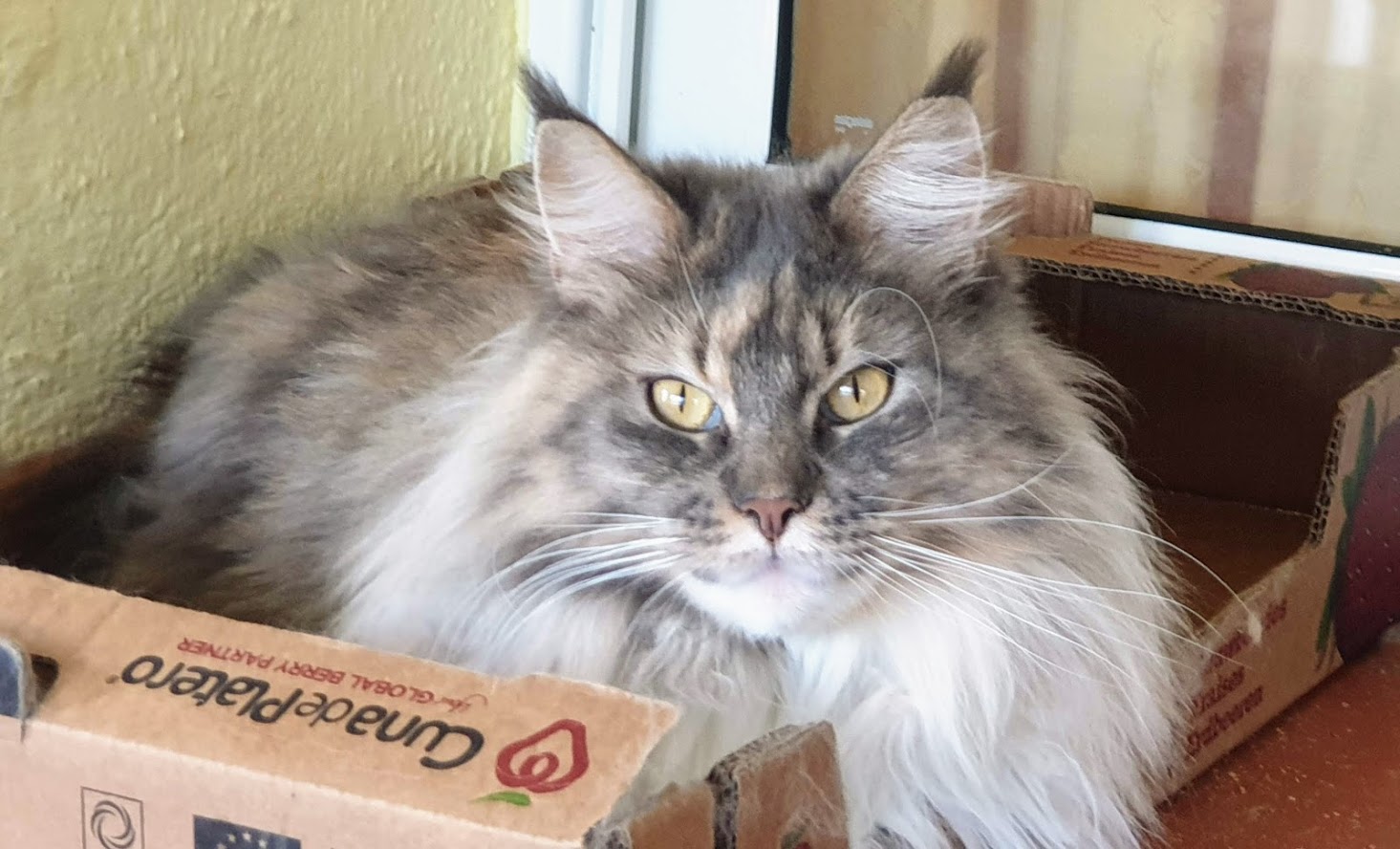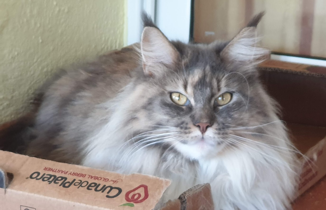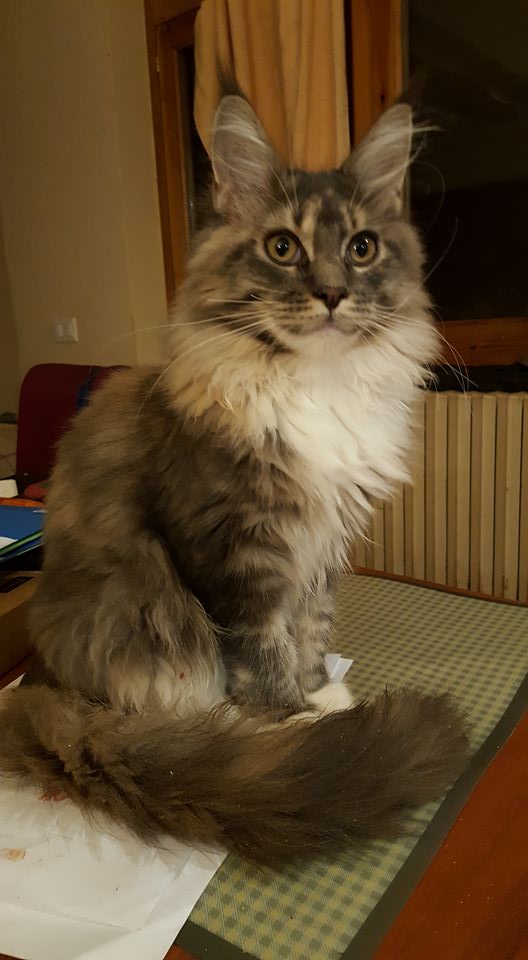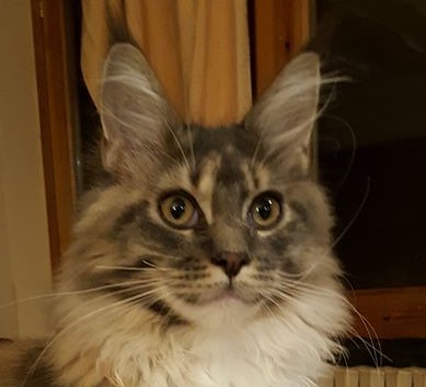 Nuestra Princesa Leia (tortuga azul tabby ticked con blanco) es el resultado de un gran cruce, de nuestras dos primeras lineas. Por el lado paterno, nuestro campeonísimo WCH & RW SGC Atlantic Acadia’s Jimmy White Feet y por el lado materno una de nuestras mejores hembras nacida en casa, la preciosa Vademar Fosca, que fue nuestro primer Best in Show de un gato nacido en casa y fuera de España.